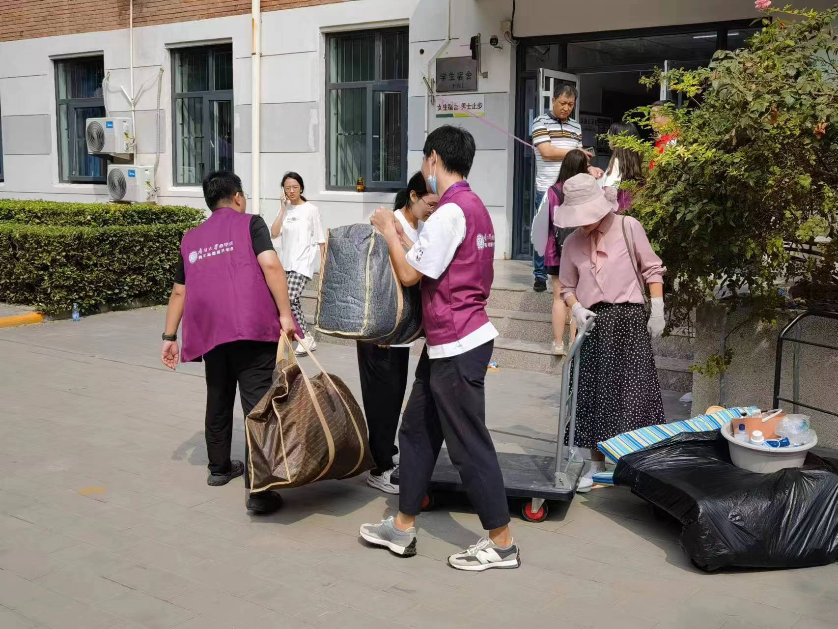新生报到后,到宿舍放置、收拾行李,宿舍楼下学院党员们和志愿者们帮助搬运行李、领取钥匙,充分发挥党员先锋模范作用,发扬志愿者精神。